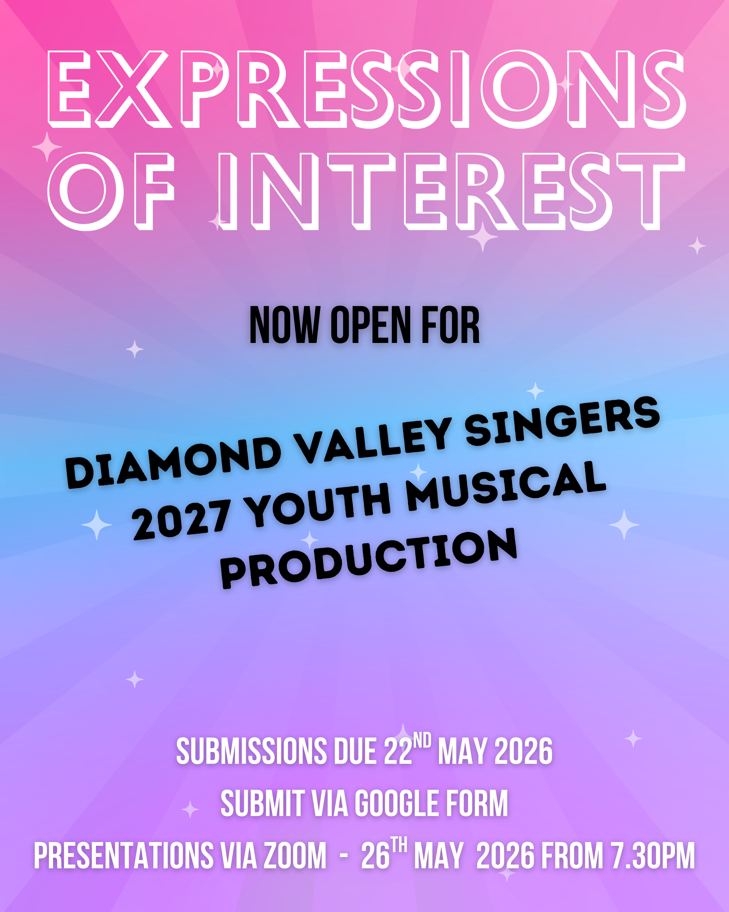 DVS is seeking Expressions of Interest for creative teams for our 2027 Youth Production. More information and the Google form to complete your pitch is here